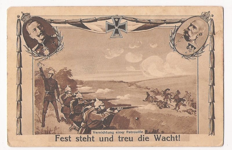 Soldiers in defence - Franz Joseph and Wilhelm with crowns in the frame
