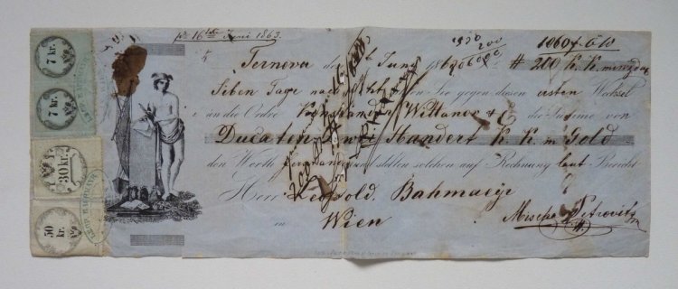 Austria's check collecting money in the bank - the charge for collecting stamps-Revenue franked