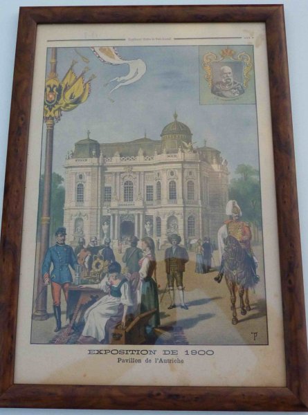 The front sheet of paper - the exhibition pavilion of Austria / portrait of Franz Joseph I. in the upper right of pure