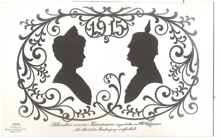Three extraordinary black print postcards with emperor and empress