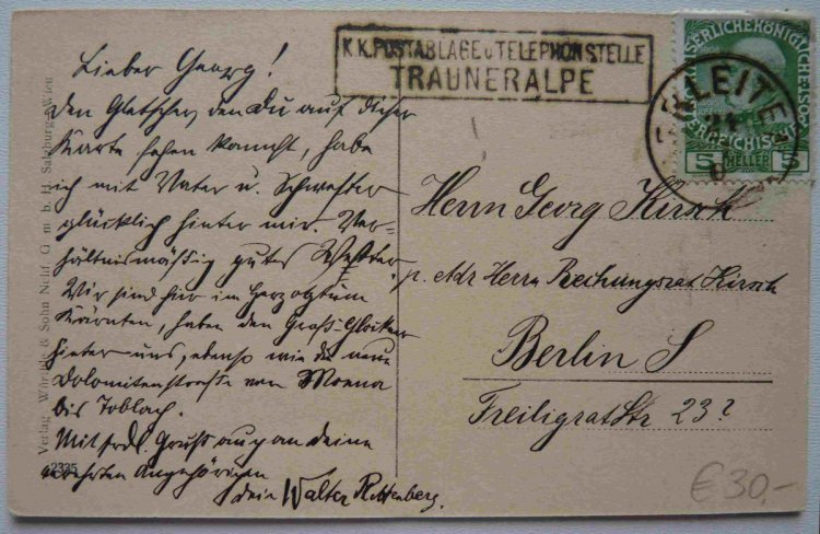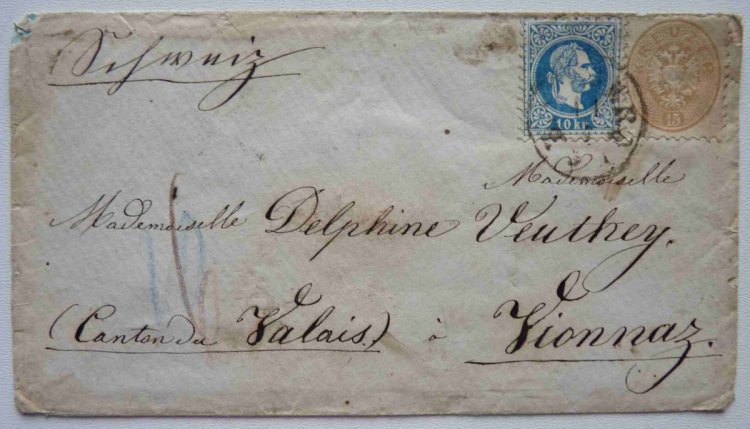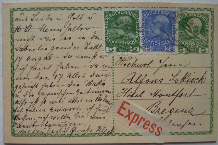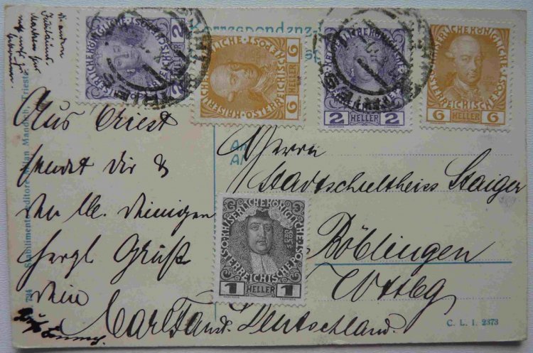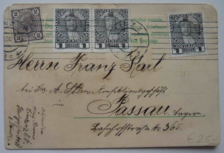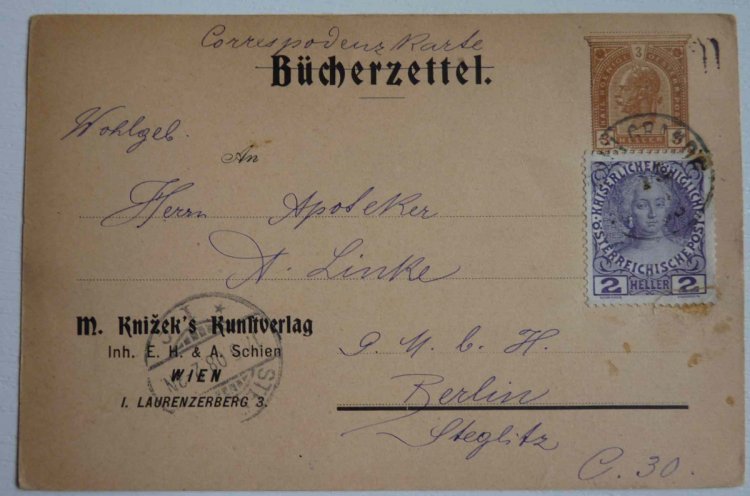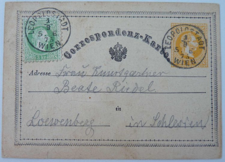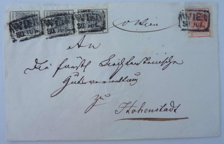 Card Würtenberg , marked 1 x 3 Kr , on the back side is an imprint of 3 Kr.