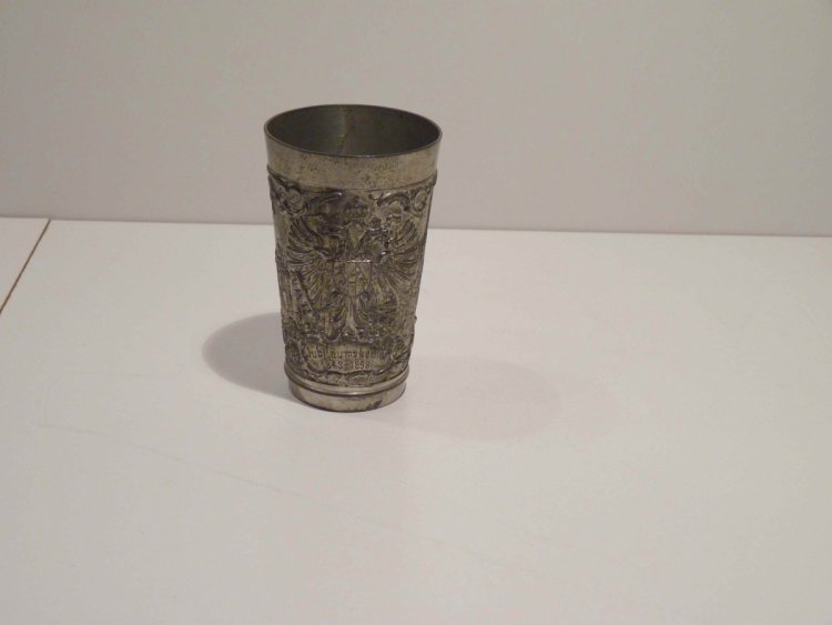 Tinny cup with portrait of Franz Joseph and austrians countrys symbols