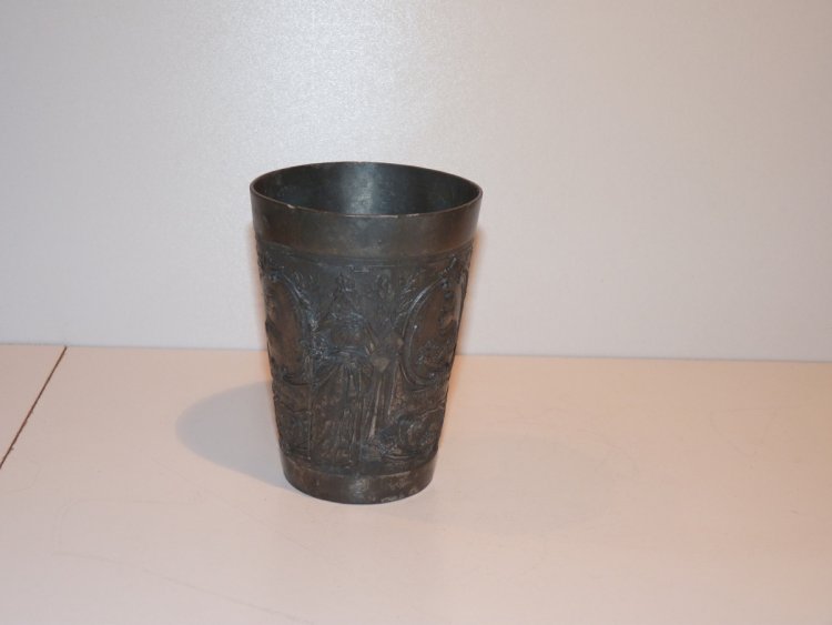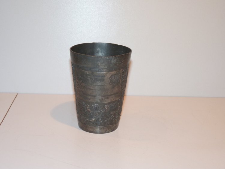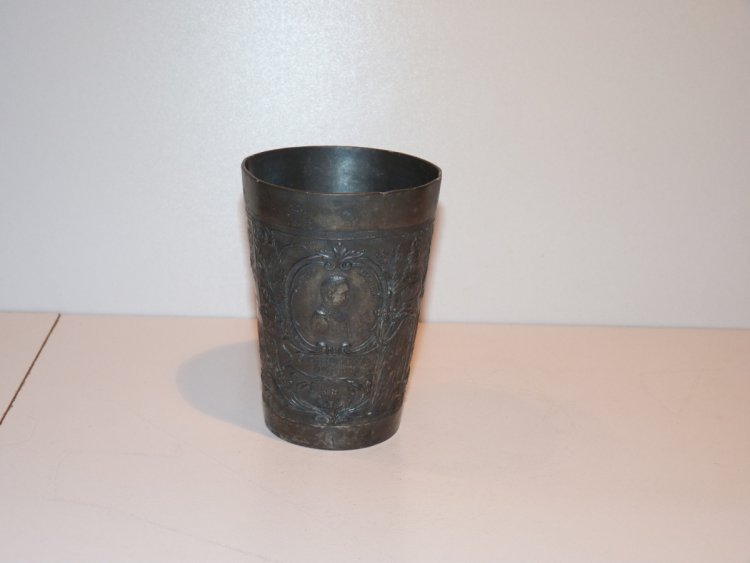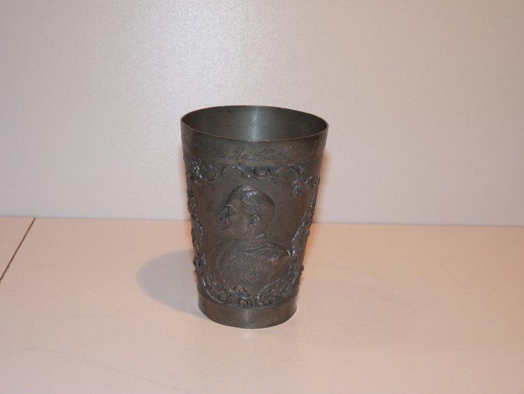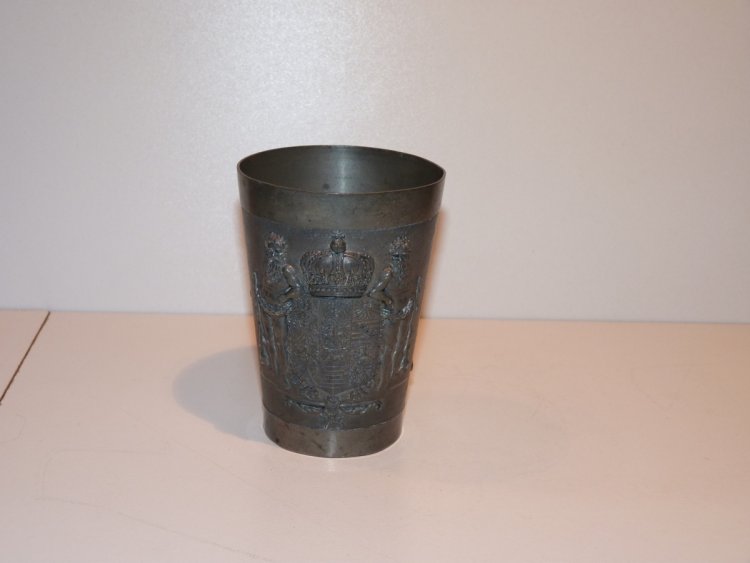 Tinny cup with portrait of emperor Wilhelm and empire crown