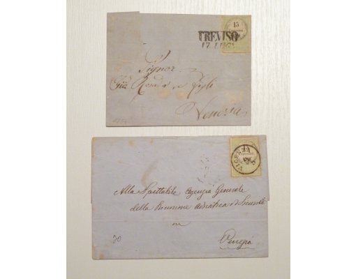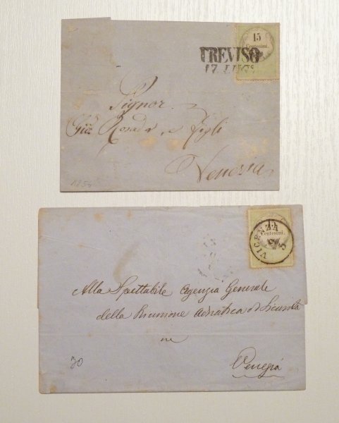 Two letters valued with 15 cents fee stamps with stamp of Trviso and Vicenza