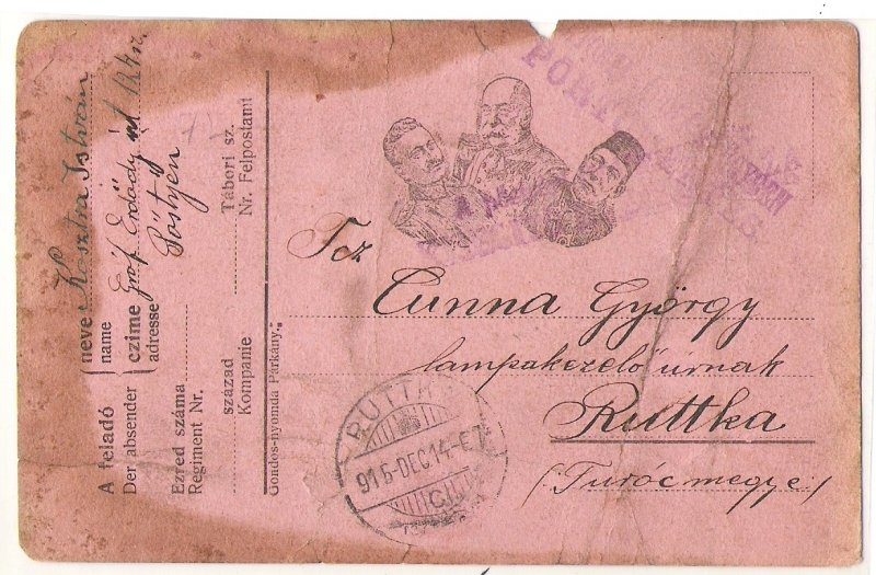 Triple portrait of Franz Joseph , Wilhelm and turkish sultan , field postcard