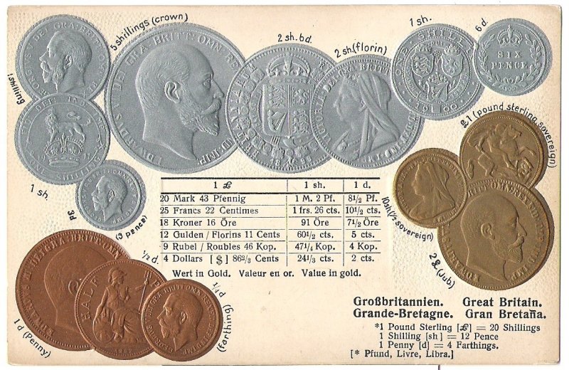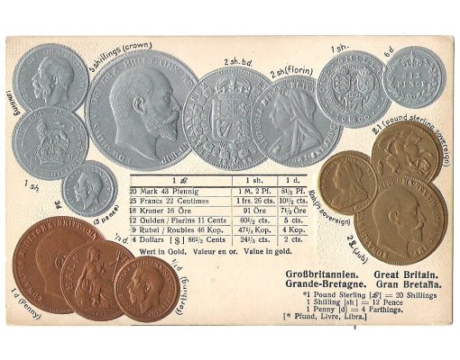 United Kingdom - postcard with coins