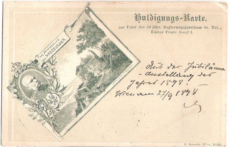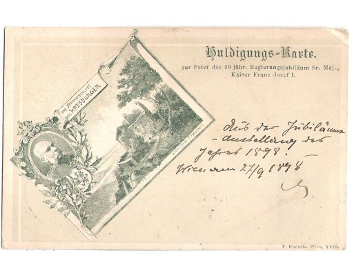 Postcard with monuments , 50th years of reign of emperor Franz Josef