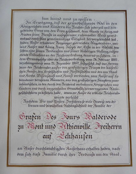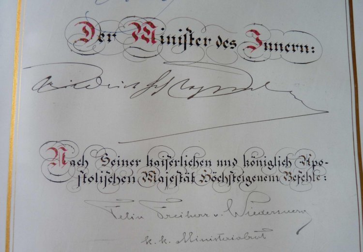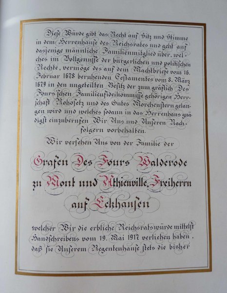 Letter of appointment - DES FOURS WALDERODE - Mikuláš Vladimír Theodor August František Maria, imperial count Des Fours Walderode from Mont a Athienville, advisor of emperor Karl I, handwritten signature of emperor, imperial seal - one of the best exhibits in museum, excellent condition - RRRR!!