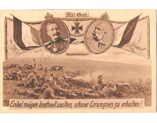 Military theme - patriotism, portraits of Wilhelm and Franz Joseph, Zeppelin and soldiers