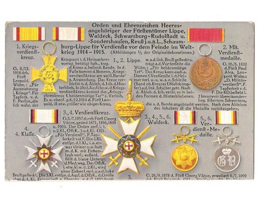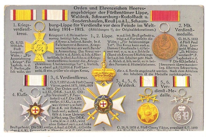 Crosses and medals from World War One 1914 -1915: Lippe , Waldeck , Schwarzburg