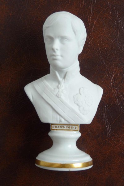 Young Franz Joseph I. - porcelain bust / showcase maintained - old work