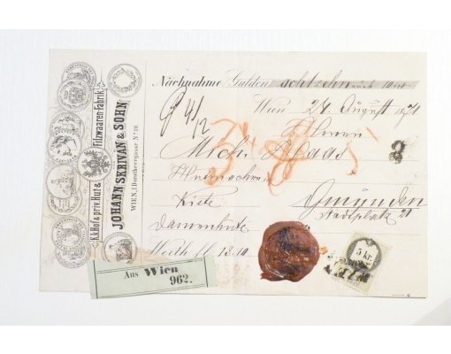 Faktura- dopis, vyfrankovaný 5 Kr. kolkem