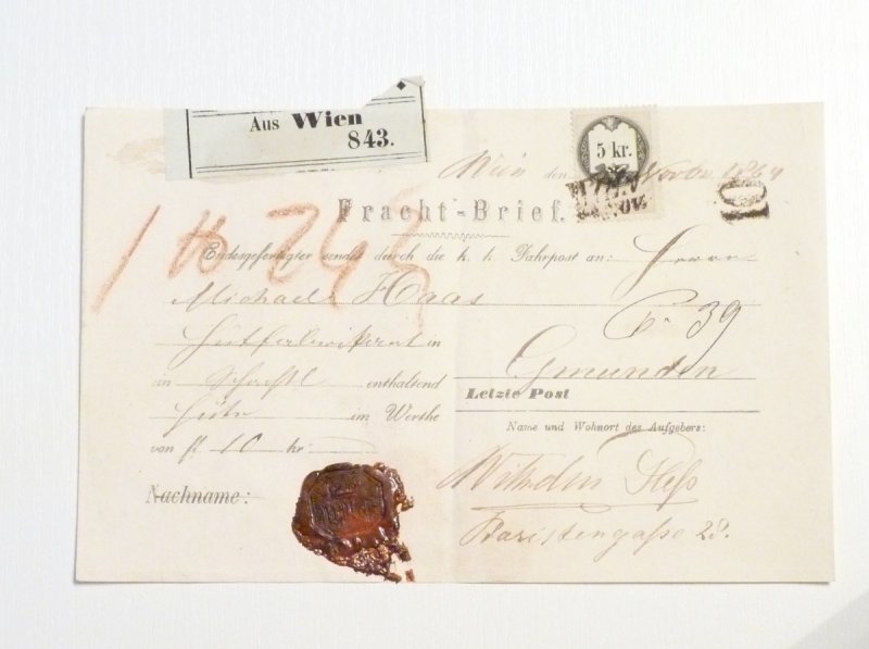 Frachtbrief- vyfrankovaný 5 Kr. kolkem