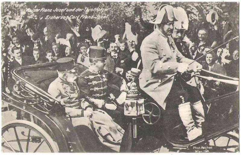 František Josef a Karel - v kočáře a jásající lid