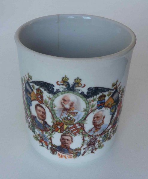 Bílý hrneček - Franz Josef I., Karel a generálové /v museu již tento hrneček je zastoupen,ale tento je s datem vydání 1914/15