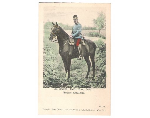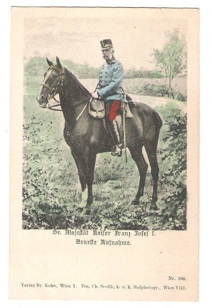 Franz Josef I. na koni, barevná kresba, Vídeň