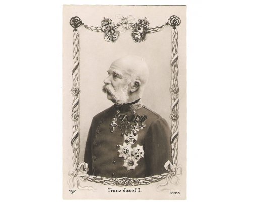 Franz Josef pod rakouským a maďarským státním znakem