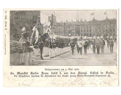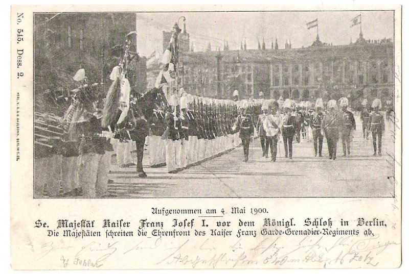 Franz Josef při přehlídce v Berlíně 1900 s císařem Wilhelmem