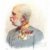Franz Joseph s modrou blůzou a černočerveným kabátem
