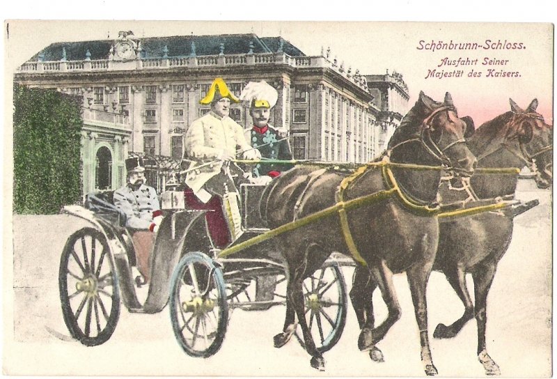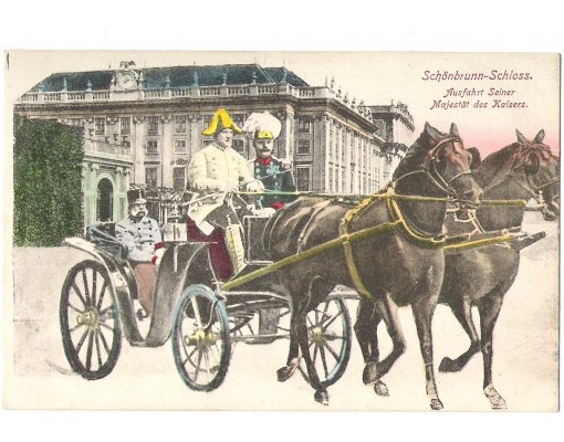 Franz Joseph v kočáru před schönbrunnským kostelem