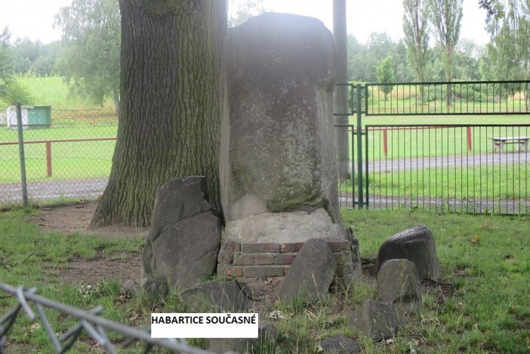 Vstoupili jsme na větší pozemek (na kterém se dnes nachází stále původní tělocvična , ale v blízkosti i přistavěná budova ZŠ a MŠ v roce 1968) , pěkně pěstěné tělocvičné místo a herní místo, pro tělocvičný spolek Habartice. Ve východním rohu plošiny o rozměrech 100x80 m je na kameni umístěna bronzová deska s reliéfem Friedricha Ludwiga Jahna (býv. „Jubilejní císařův kámen" u tělocvičny z r.1908).