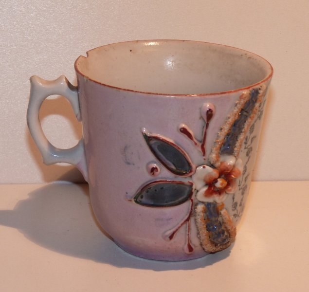 Hindenburg na fialovém hrnečku s rostlinným motivem