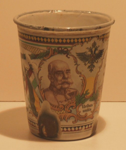 Hrneček s motivy 1. světové války a s portréty Franz Josefa a Wilhelma