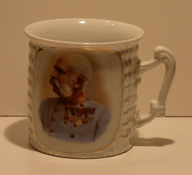 Vroubkovaný hrneček s portrétem císaře Františka Josefa ve služební uniformě