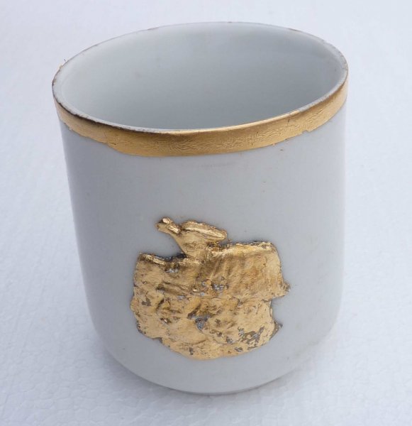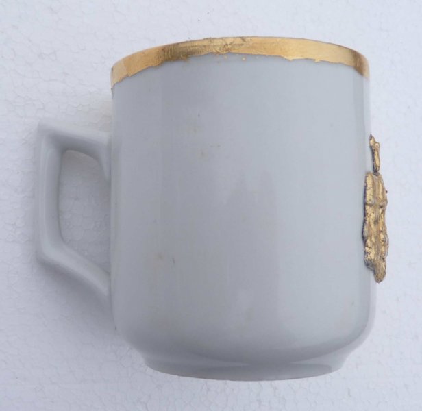 Porcelánový hrnek s portréty trojdohody ( zlacený odlitek ) - Franz Josef , Wilhelm a Mohamed V. / turecký sultán /