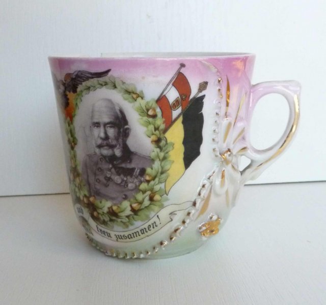 Mimořádně zdobný hrníček s portréty císařů / Franz Josef I. a Wilhelm II.