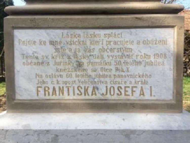 Kamenný kříž v zahradě bývalé obecní školy v Juřince nabyl dřívější krásu. Zasloužil se o to restaurátor, který sakrální památku z roku 1908 očistil, opravil poškozená místa a obnovil nápis na podstavci, připomínající, že kříž byl vztyčen k šedesátému výročí panování císaře Františka Josefa I.