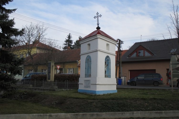 „Na památku jubilea 60letého panování císaře a krále Františka Josefa I. a 50letého kněžství papeže Pia IX. Zbudoval křesť. soc. spolek a dobrodinci 1908."