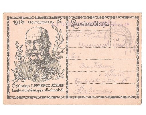 Maďarský lístek polní pošty- Ferencz József I. s ozdobným orámováním