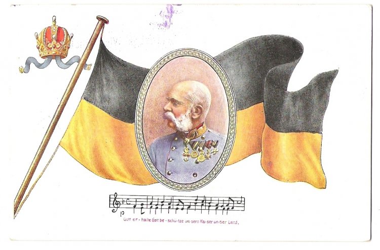 Malovaný obrázek Franz Josefa s černožlutým praporem