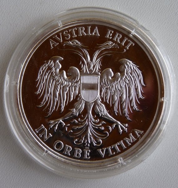 Marie Terezie na medaili s rakouskou orlicí a erbem