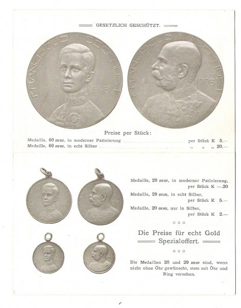 Medaile Franz Josefa , reklamní pohlednice