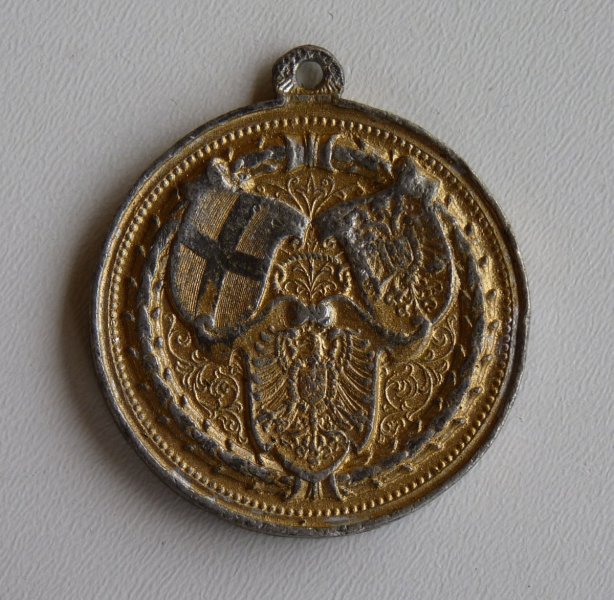 Medaile s vyobrazením tří evropských mocnářů se zemskými erby