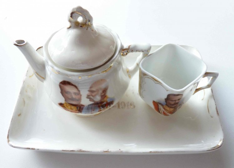 Mléčenka s dvojportrétem císařů a mimořádný čtyřhranný hrníček s císařem Vilémem