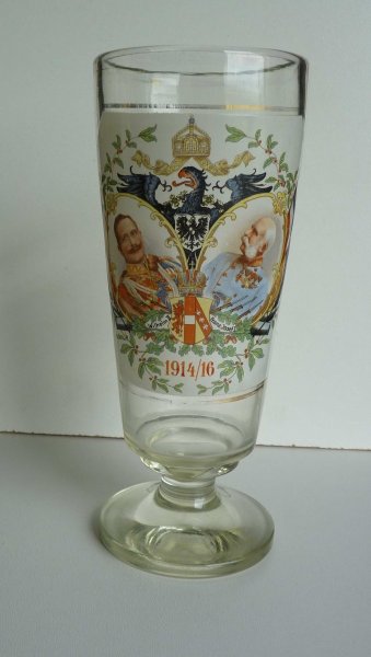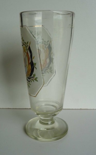 Vysoká sklenička s německou orlicí , portréty císařů se státními vlajkami a ozdobným orámováním