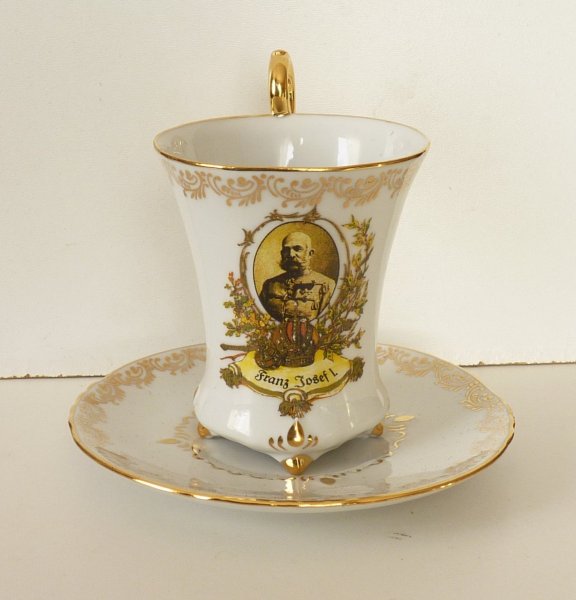 Nádherný hrneček s podšálkem a s portrétem Františka Josefa - novodobé (varianta č.2 )