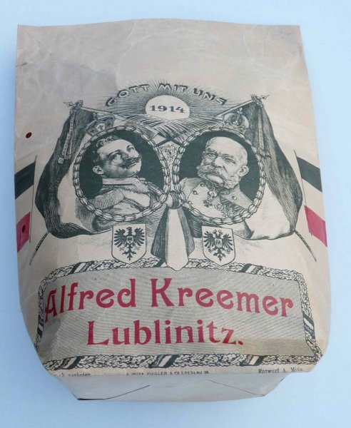 Papírový sáček - s portréty císařů FJ I. a W II. / Alfred Kreemer - Lublinitz