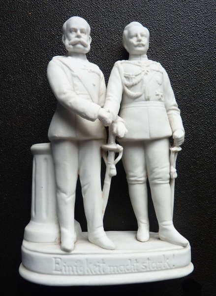Patriotické sousoší císařů - Franz Josef a Wilhelm / biskvit - mimořádně zachovalý exponát , 15 cm