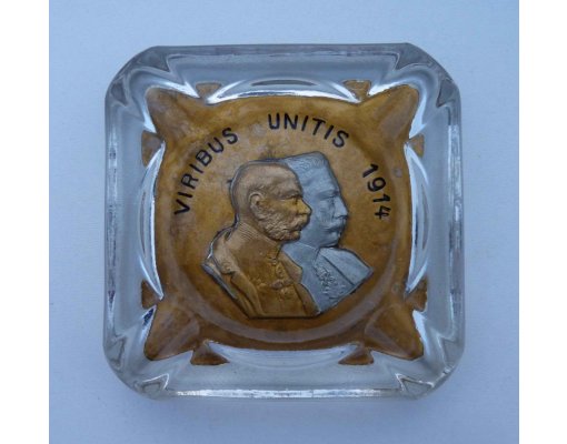Patriotický popelník s portréty císařů Františka Josefa a Viléma