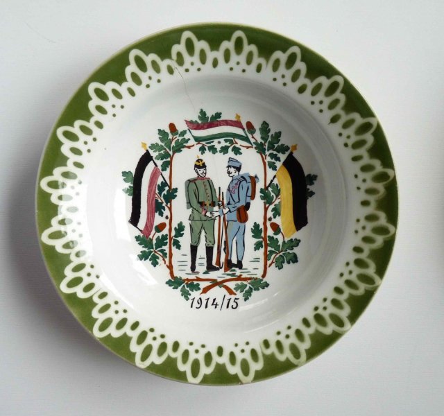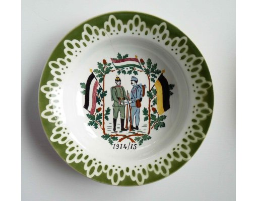 Patriotika - talíř s vojáky Rakouska - Uherska a Německa / začátek války 1914 - 1915