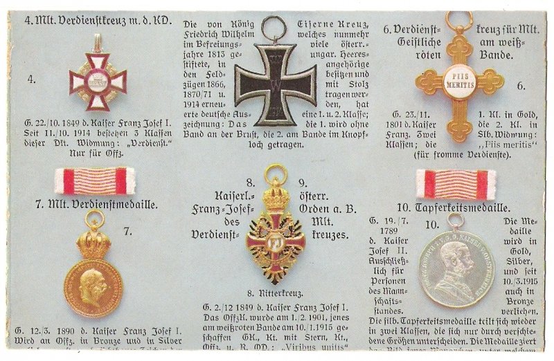 Řád Franz Josefa I., Řád pro vojenské kněze PIIS MERITIS, Železný kříž a další