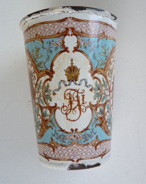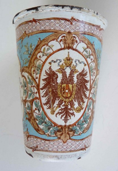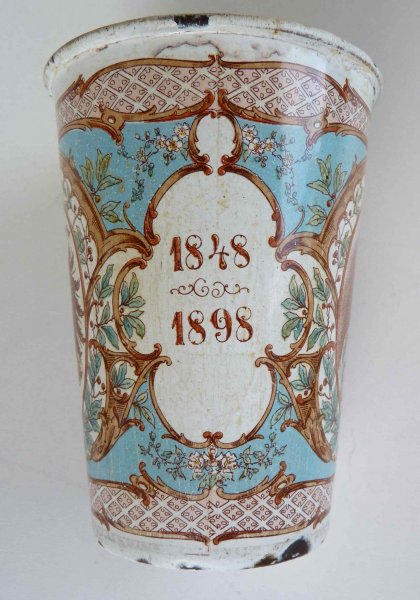 Plechový pohárek s portrétem Franz Josefa - smalt