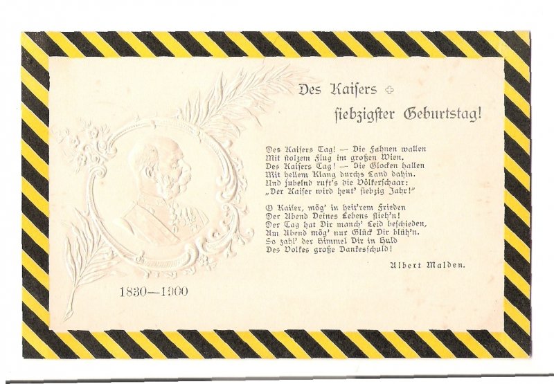 Pohlednice k císařovým 70. narozeninám s básní Alberta Maldena