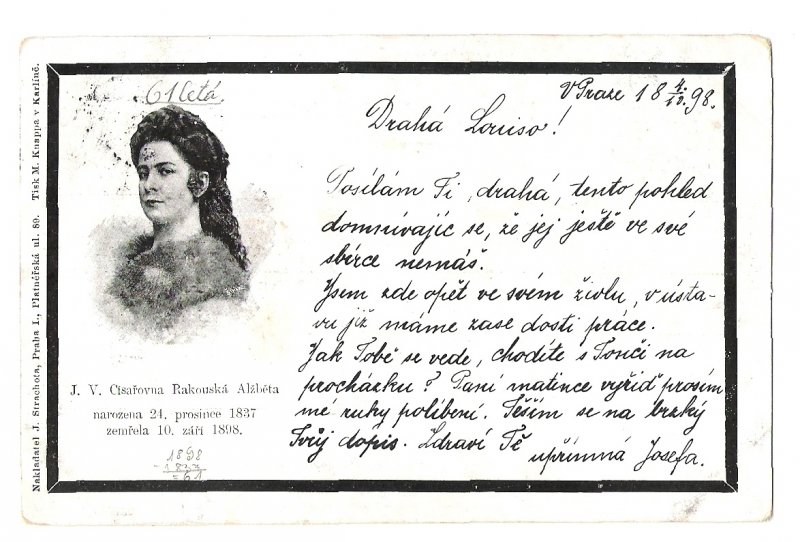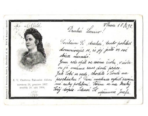 Pohlednice s černobílým portrétem císařovny Elisabeth