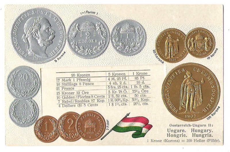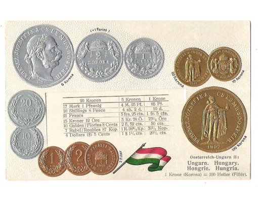 Pohlednice s mincemi Franz Josefa- maďarské vydání (2)