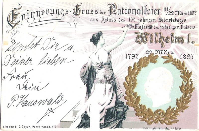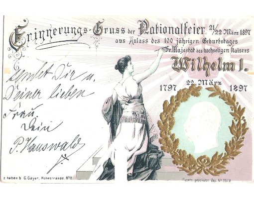 pohlednice vydaná ke 100 let narození císaře Wilhelma I.